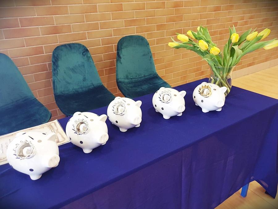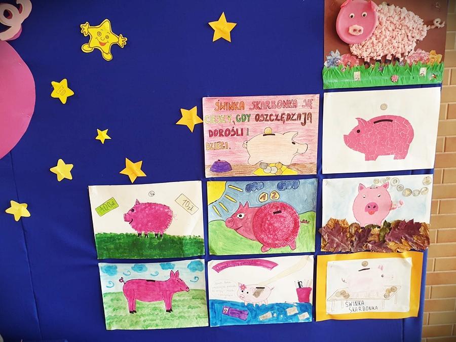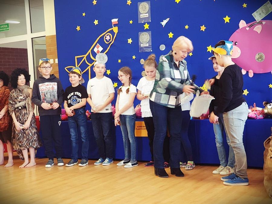 Ostatnim punktem spotkania prowadzonym przez panią Elżbietę Kalinowską było ogłoszenie wyników konkursu plastycznego ,,Świnka skarbonka”. Każda klasa otrzymała nagrodę w postaci –świnki skarbonki i słodycze.