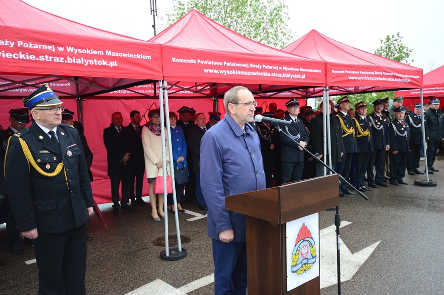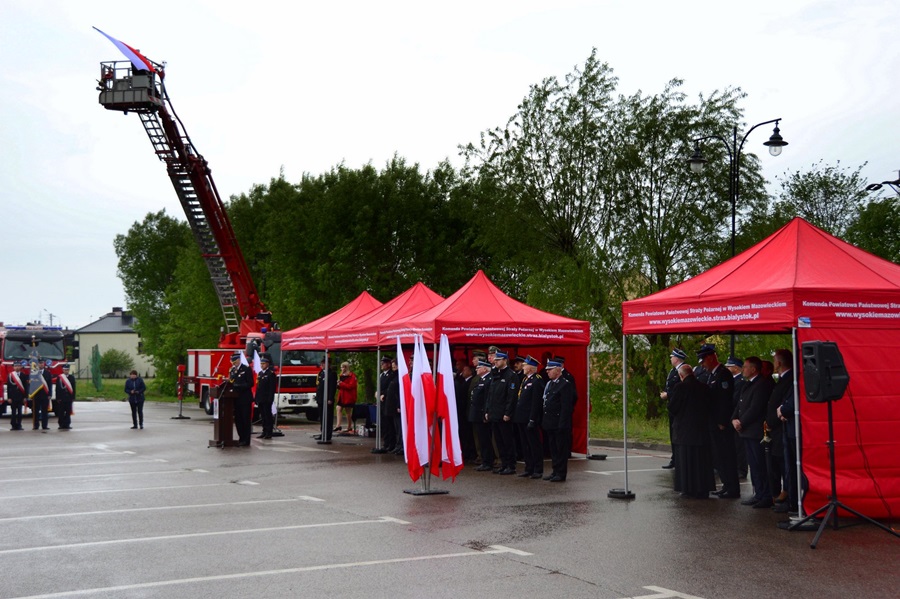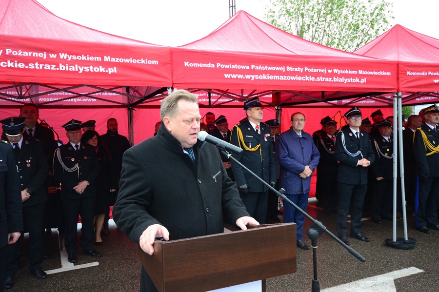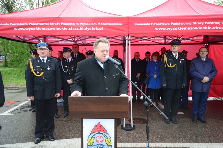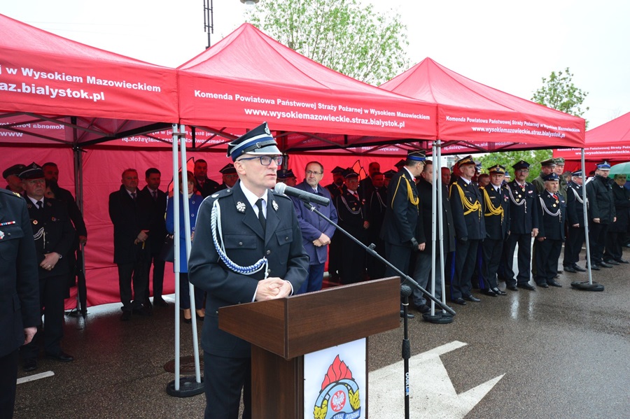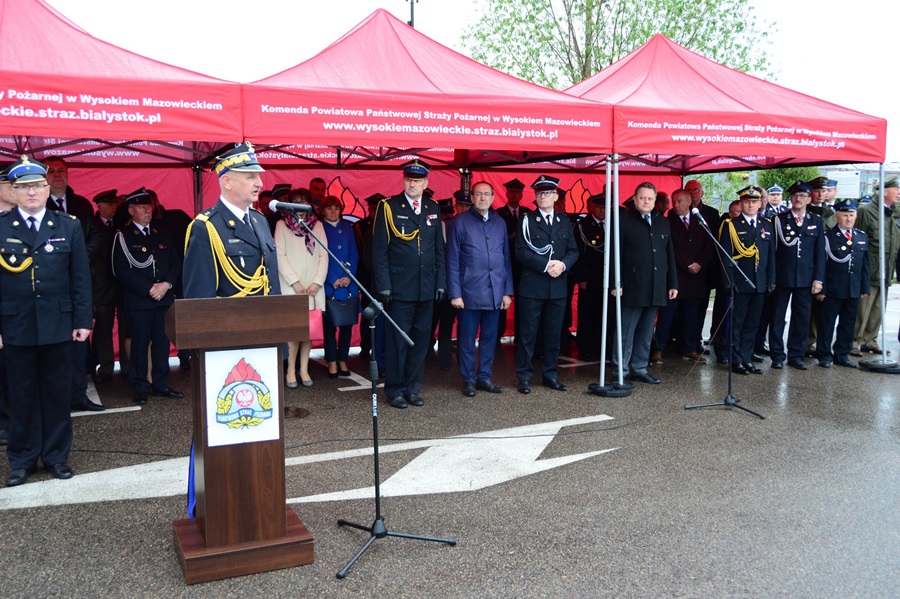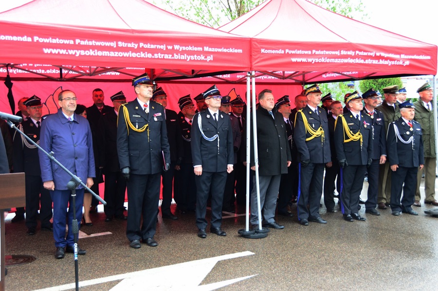 Po złożeniu meldunku, przeglądzie pododdziałów i podniesieniu flagi państwowej, gospodarz uroczystości st. bryg. Andrzej Koc – komendant powiatowy Państwowej Straży Pożarnej w Wysokiem Mazowieckiem, a zarazem prezes oddziału wojewódzkiego ZOSP RP w Białymstoku, powitał gości honorowych: Jarosława Zielińskiego – posła na sejm RP, sekretarza stanu w Ministerstwie Spraw Wewnętrznych i Administracji, gen. bryg. Leszka Suskiego – komendanta głównego PSP, Jacka Boguckiego – posła na sejm RP, nadbryg. Jarosława Wendta – podlaskiego komendanta wojewódzkiego PSP, ks. Wojciecha Ejsmonta – wojewódzkiego kapelana strażaków, ks. ihumena Sergiusza – krajowego kapelana straży pożarnej wyznania prawosławnego, ks. Radosława Kubła – diecezjalnego kapelana strażaków, ks. Ryszarda Niwińskiego – proboszcza parafii pw. Jana Chrzciciela w Wysokiem Mazowieckiem, ks. Mirosława Orłowskiego – proboszcza parafii pw. Najświętszej Maryi Panny w Wyszonkach Kościelnych i Bogdana Zielińskiego – starostę wysokomazowieckiego, prezesa zarządu oddziału powiatowego ZOSP RP wraz z radnymi Rady Powiatu Wysokomazowieckiego.