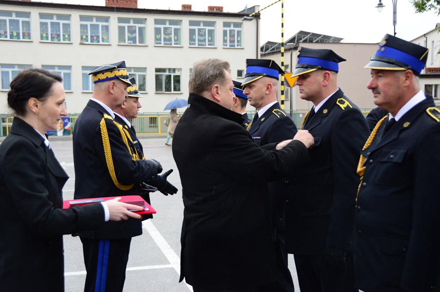 Podczas uroczystości Jarosław Zieliński – sekretarz stanu w Ministerstwie Spraw Wewnętrznych i Administracji, w asyście gen. bryg. Leszka Suskiego – komendanta głównego PSP i innych władz wręczył zasłużonym strażakom: