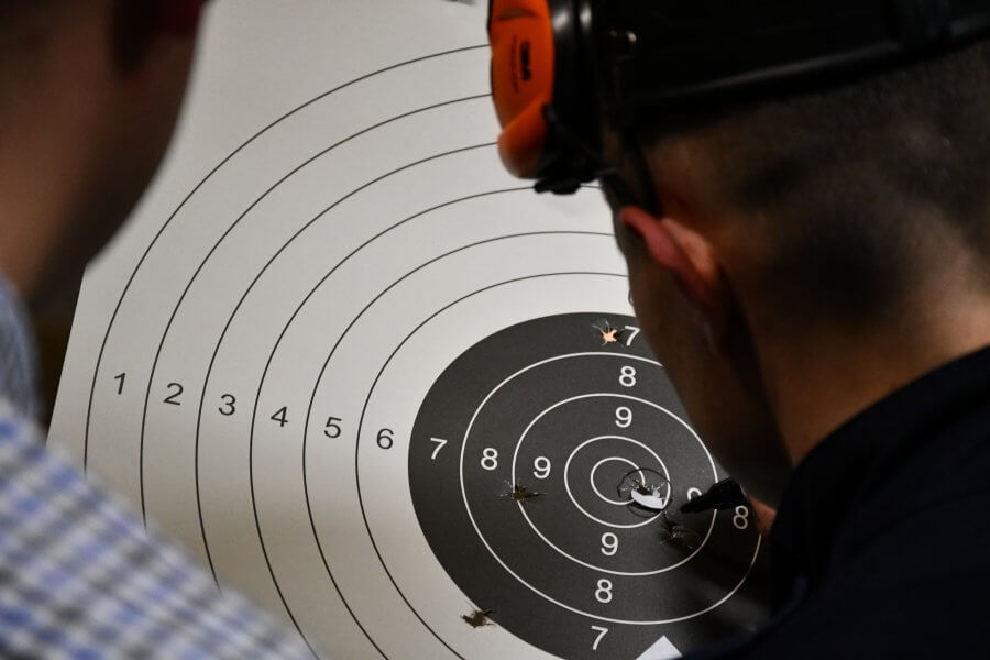 Najpierw była rozgrzewka, potem strzelanie na sucho i w końcu padła komenda "Uwaga - Ognia". Każdy z uczestników turnieju oddał 6 strzałów do tarcz, z odległości 25 metrów, w ciągu minuty.