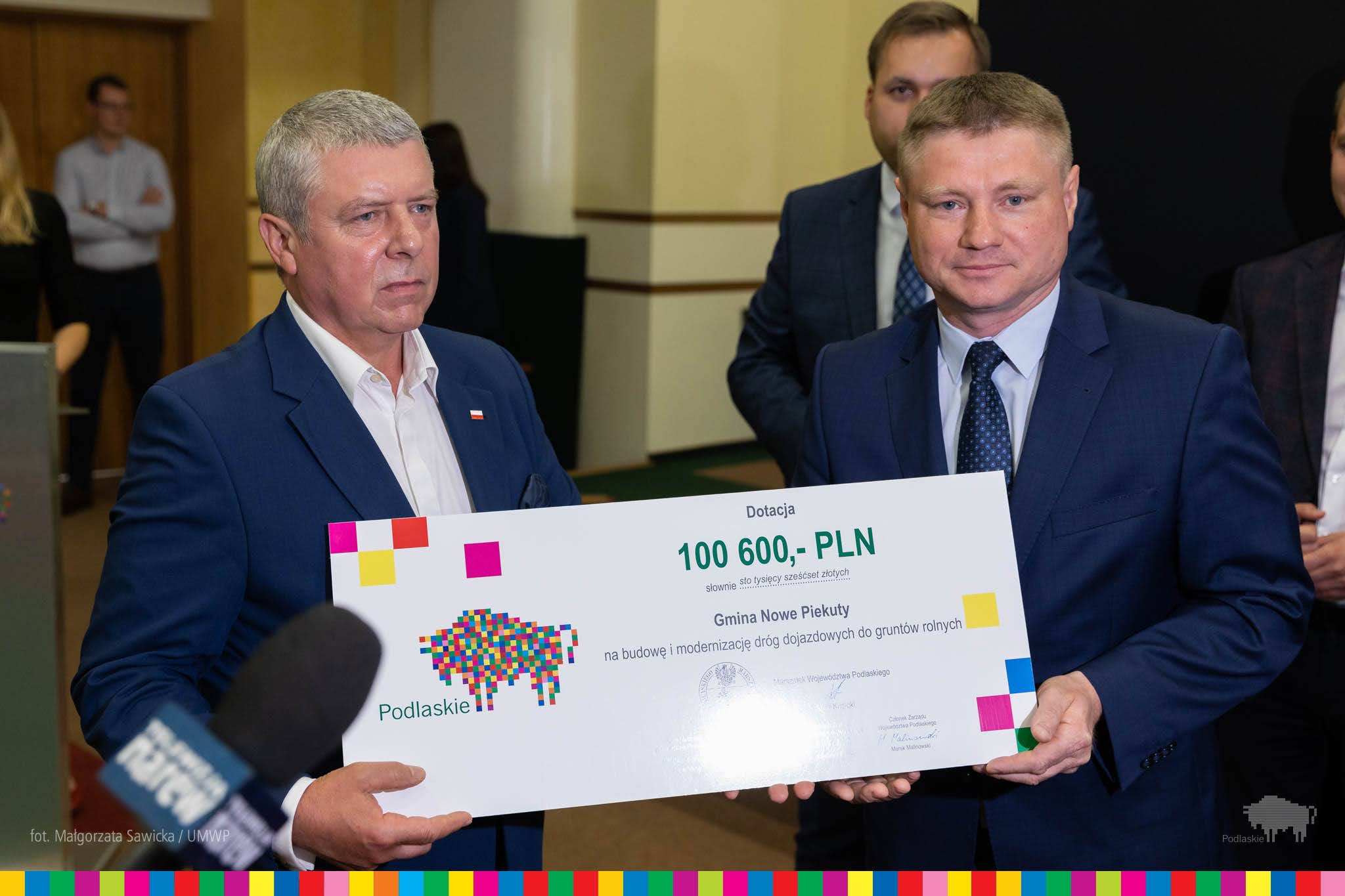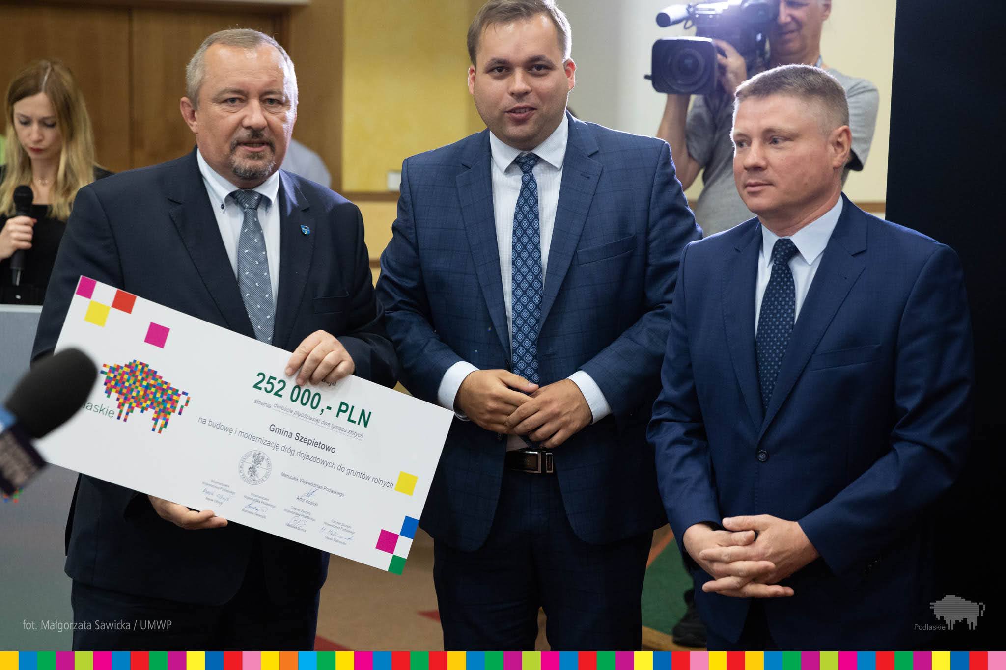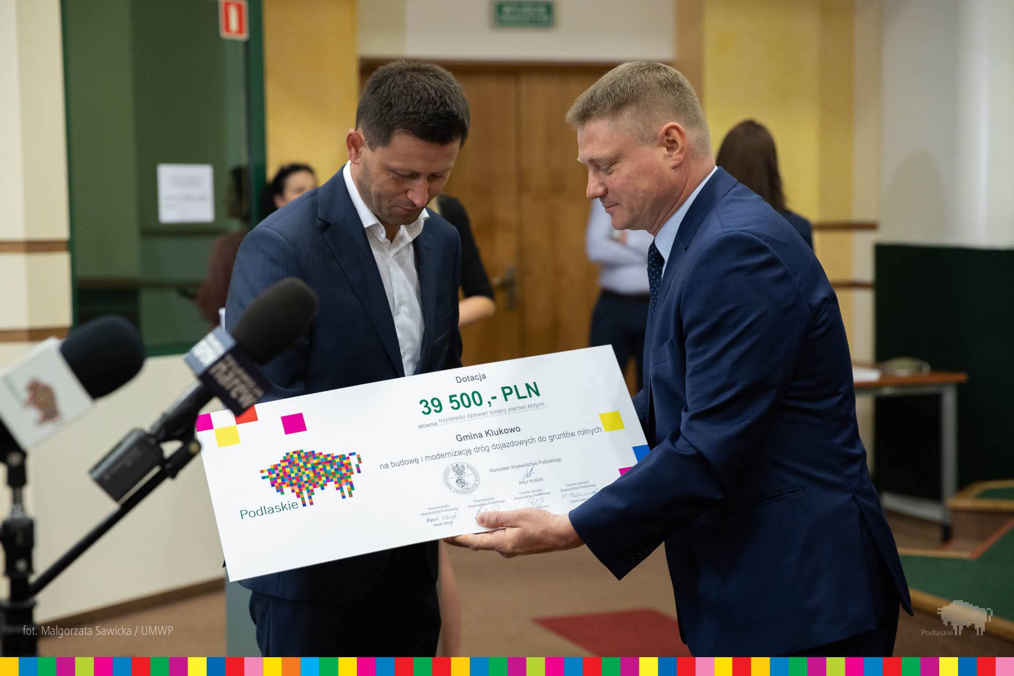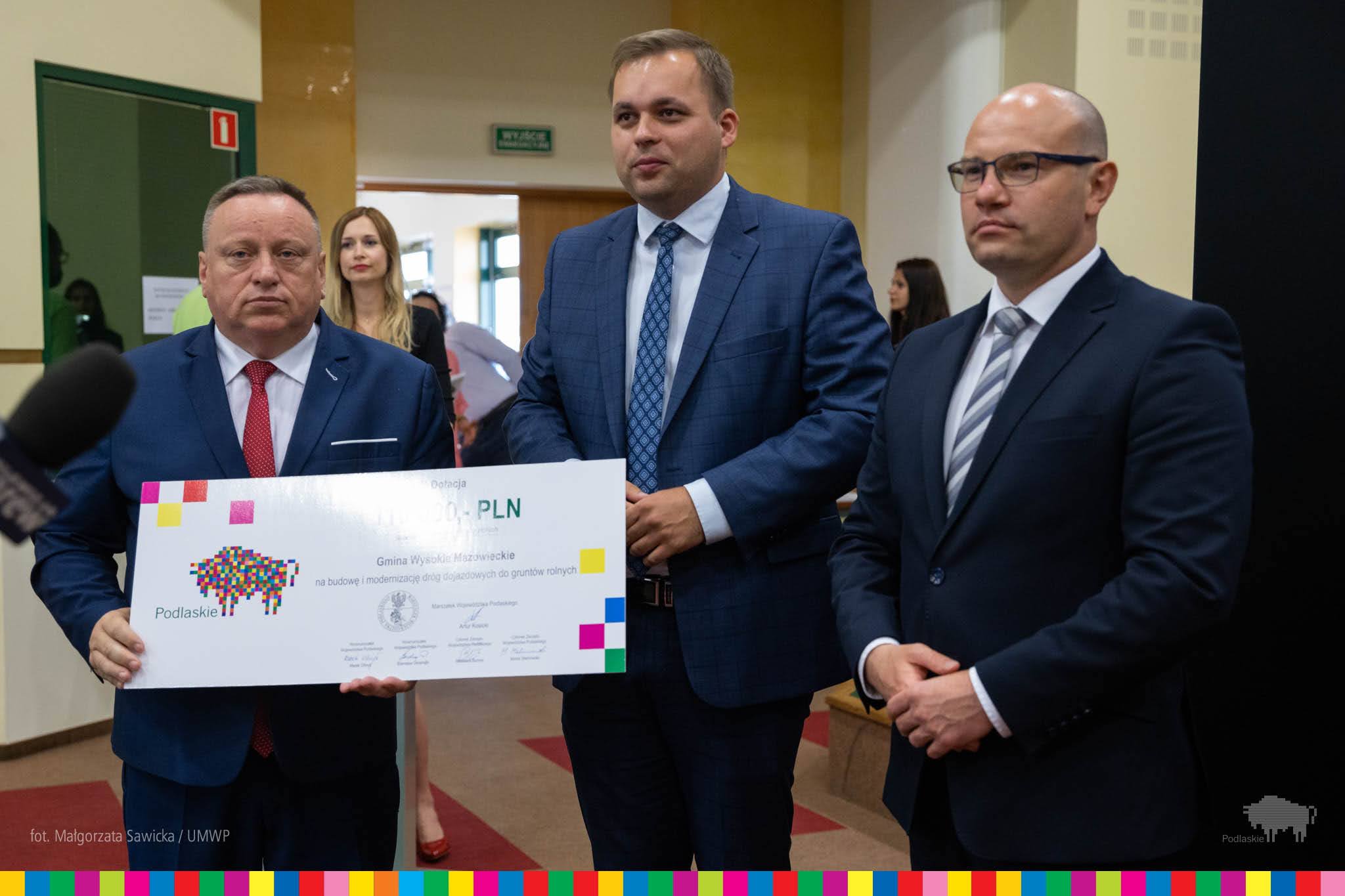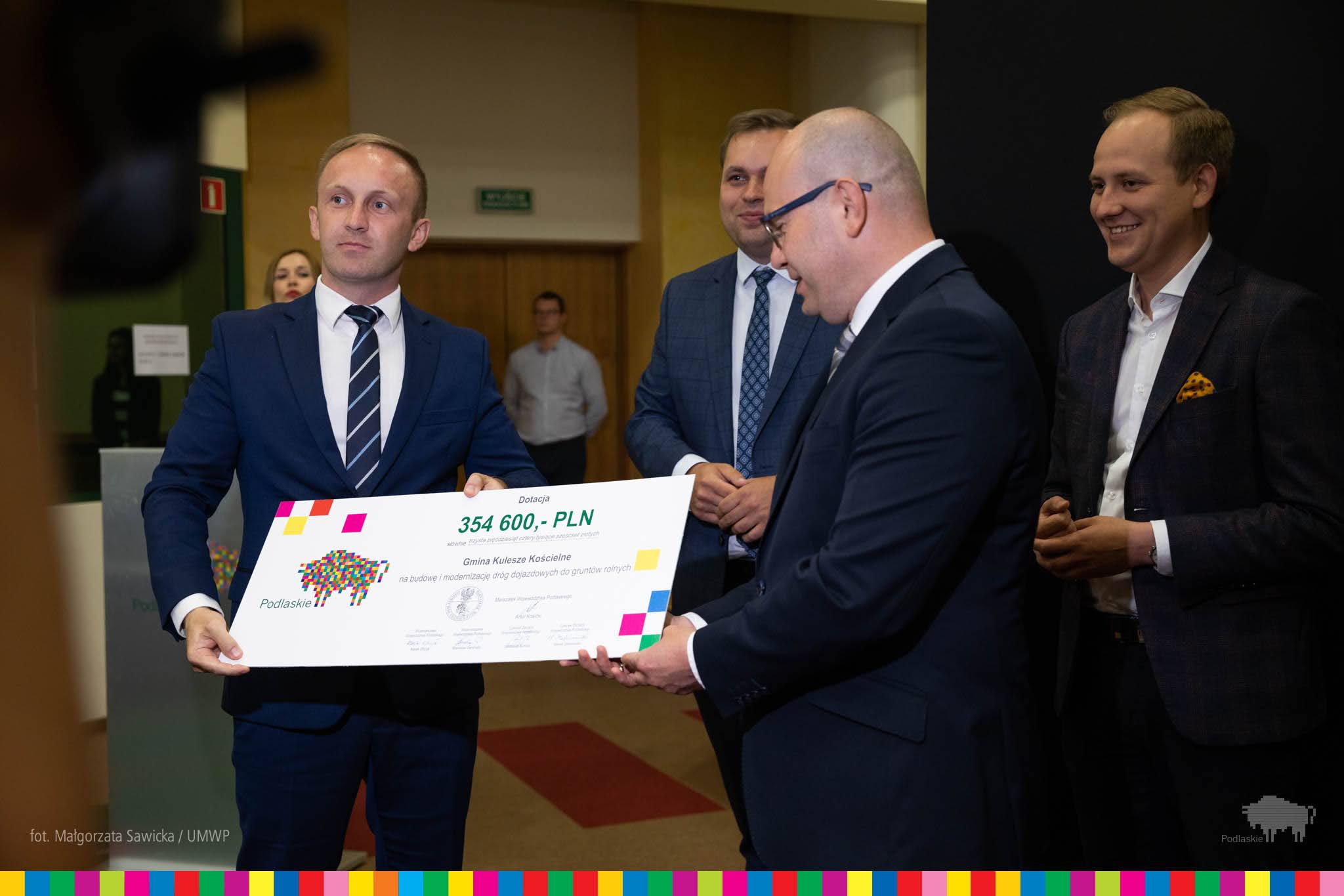 W środę (1.07) marszałek Artur Kosicki, wicemarszałek Marek Olbryś, członkowie zarządu Wiesława Burnos i Marek Malinowski, a także wiceprzewodniczący sejmiku Łukasz Siekierko i radny wojewódzki Paweł Wnukowski przekazali wójtom i burmistrzom symboliczne czeki z dotacjami.