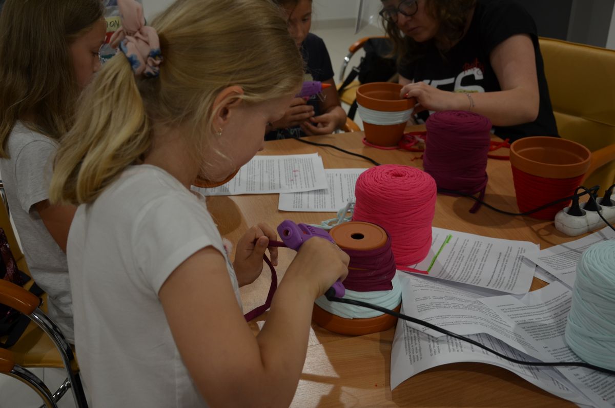 W poniedziałek zrobili zegary z płyt winylowych, lampki z kaset magnetofonowych oraz ozdabiali stare doniczki włóczką T-shirtową – czyli nadawali nowe życie starym przedmiotom. Natomiast we wtorek nagrywali tuto riale, czyli filmiki z instrukcją, jak te przedmioty wykonać. Już wkrótce będą dostępne do obejrzenia.