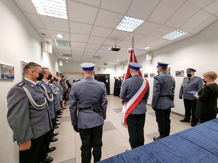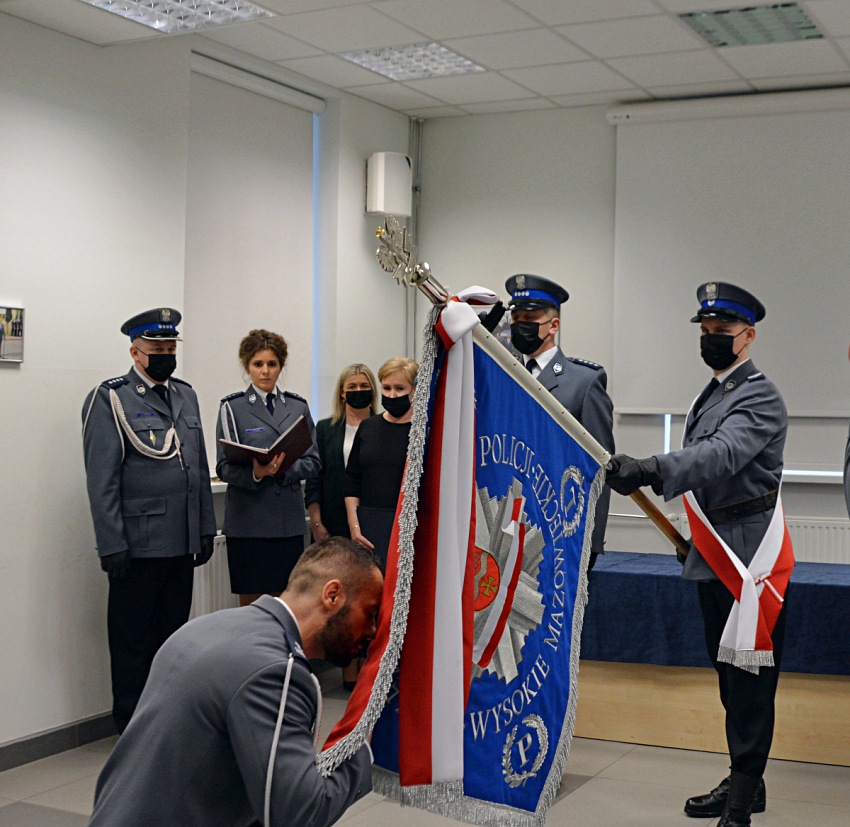 Młodszy inspektor Marek Palecki pożegnał Sztandar Komendy Powiatowej Policji w Wysokiem Mazowieckiem, a następnie złożył meldunek I Zastępcy Komendanta Wojewódzkiego Policji w Białymstoku inspektorowi Jackowi Kumpiałowskiemu o zdaniu jednostki. Jako pierwszy głos zabrał I Zastępca Komendanta Wojewódzkiego Policji inspektor Jacek Kumpiałowski, który podziękował młodszemu inspektorowi Markowi Paleckiemu za te 23 lata służby, 23 lata zakładania munduru polskiego policjanta. Dodał, że zawsze od komendanta Paleckiego spotykał się z życzliwością i dobrocią, za co dzisiaj podziękował. I Zastępca zwrócił się również do inspektora Tomasza Wyszkowskiego, któremu zostały powierzone obowiązki komendanta wysokomazowieckiej Policji mówiąc, że to doświadczony i wspaniały człowiek, który będzie kontynuował to co dotychczasowy komendant rozpoczął. Pogratulował mu i życzył dalszych sukcesów.