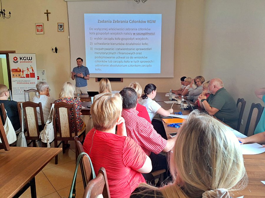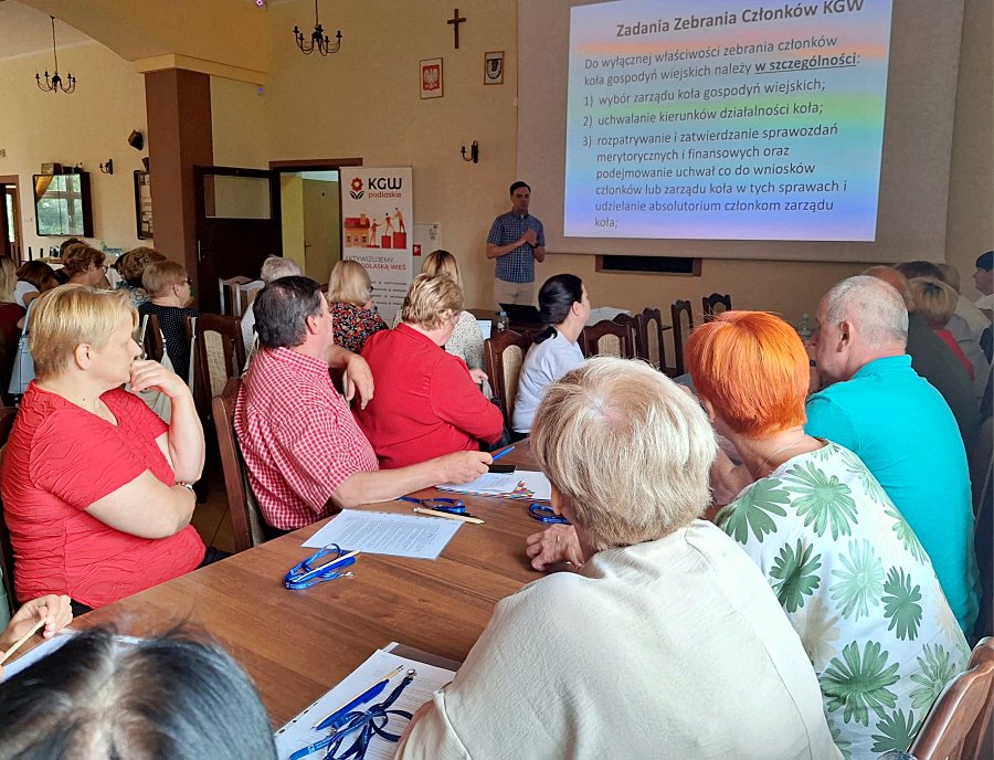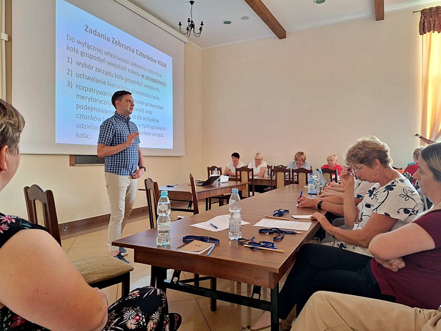 Prowadzącym zajęcia był Andrzej Rybus-Tołłoczko, który wnikliwie omówił zagadnienia statutowe oraz specyfikę działania KGW. W spotkaniu udział wzięły przedstawicielki i przedstawiciele: