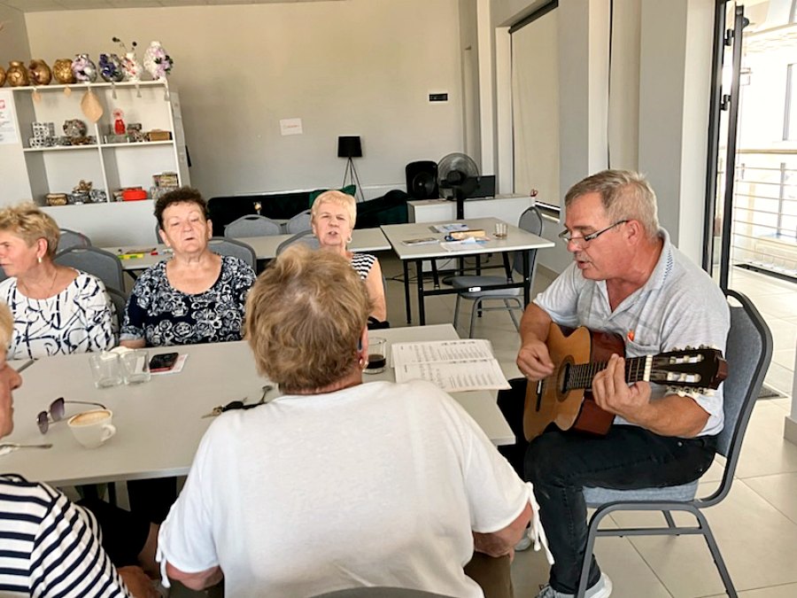 W dniu dzisiejszym (13.09.2023r.) Klub Senior+ w Wysokiem Mazowieckiem zorganizował spotkanie w ramach współpracy z Miejskim Ośrodkiem Kultury. Gościem specjalnym był Leszek Koliński, pracownik MOK i członek zespołu muzycznego "Talizman".