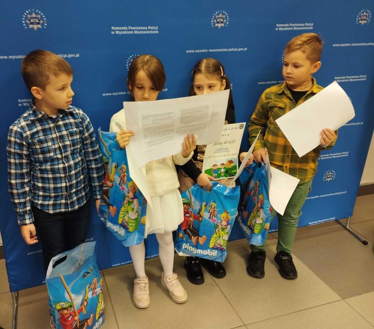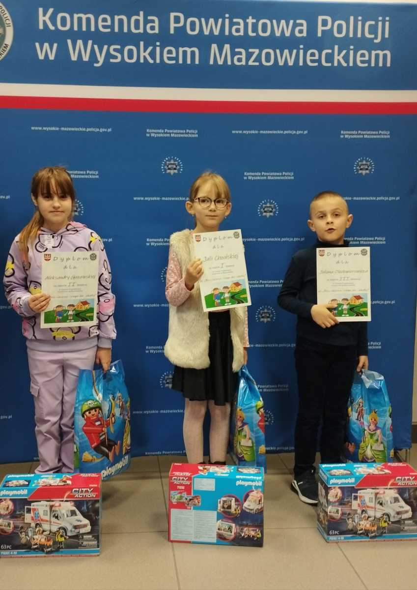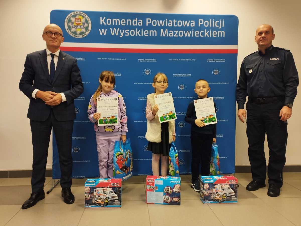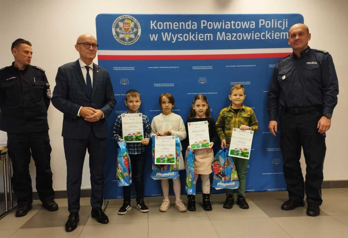 Organizatorzy wyróżnili również 4 prace. Autorzy zwycięskich i wyróżnionych projektów otrzymali z rąk Komendanta Powiatowego Policji inspektora Tomasza Wyszkowskiego oraz Starosty Powiatu Wysokomazowieckiego Bogdana Zielińskiego dyplomy i atrakcyjne nagrody, ufundowane przez Starostwo Powiatowe w Wysokiem Mazowieckiem.