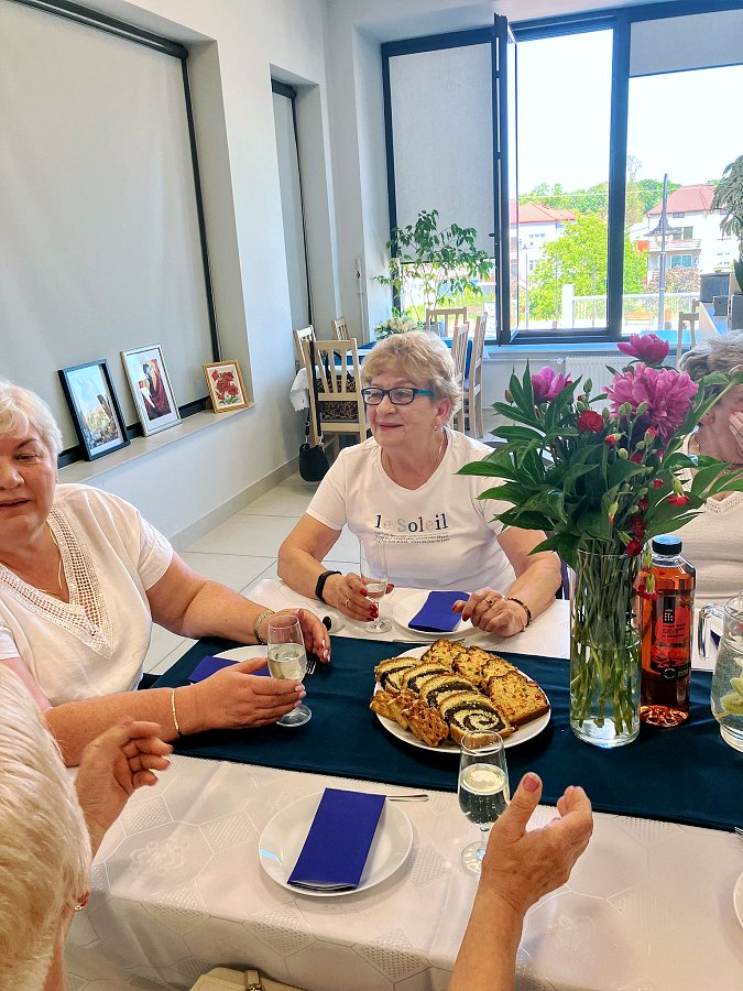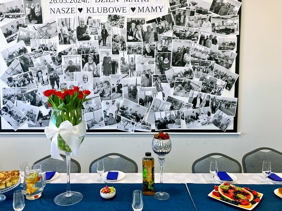 Niespodzianką dla zebranych był kolaż z fotografii dokumentujących codzienność w klubie, który przywołał wiele miłych wspomnień. Spotkanie przebiegło w pozytywnej atmosferze, a uczestnicy mieli okazję miło spędzić czas w dobrym towarzystwie, celebrując rolę matek w społeczności.