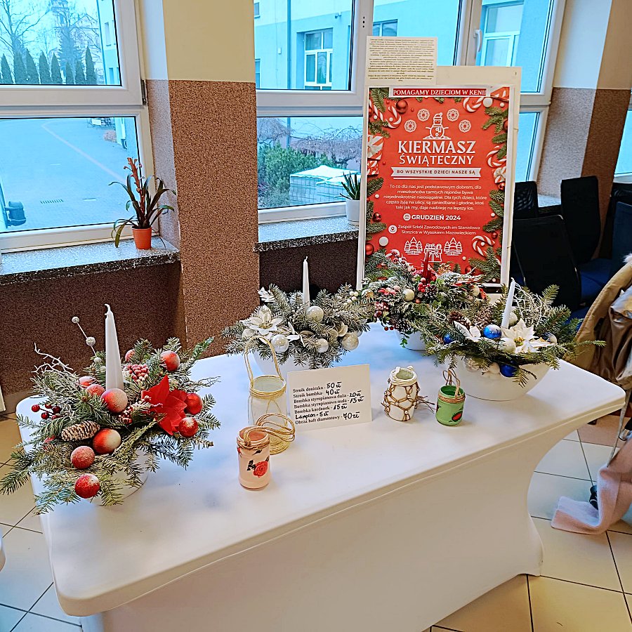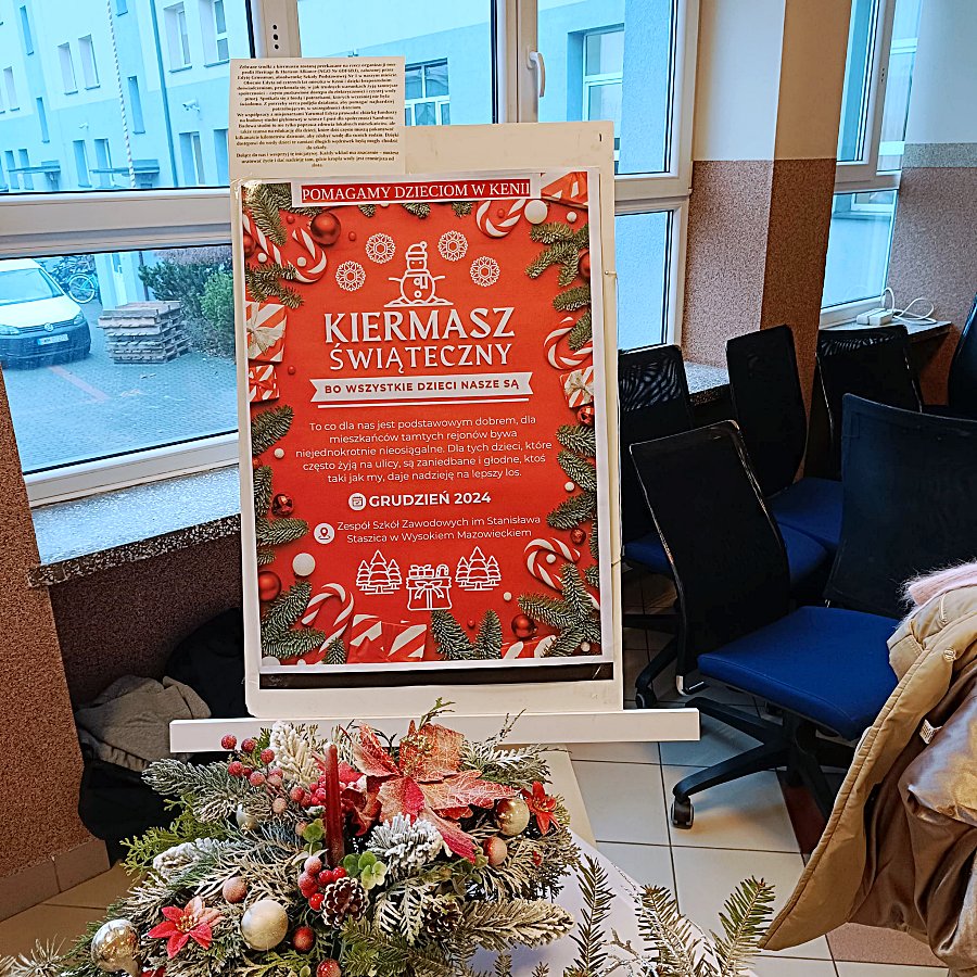 W Zespole Szkół Zawodowych im. Stanisława Staszica w Wysokiem Mazowieckiem rozpoczął się kiermasz świąteczny, z którego dochód zostanie przeznaczony na pomoc dzieciom w Kenii. Sprzedaż ozdób świątecznych prowadzona jest przy sali nr 21 przez Wolontariat szkolny "Pomagam aktywnie" we współpracy z Klubem Senior+.