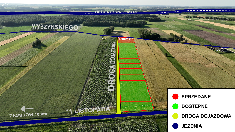 Działki położone są w cichej okolicy w pobliżu lasu, 10km od Zambrowa.