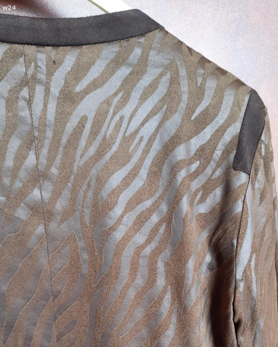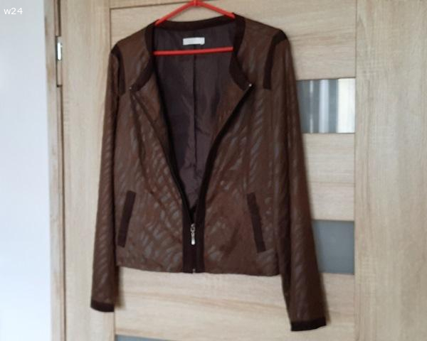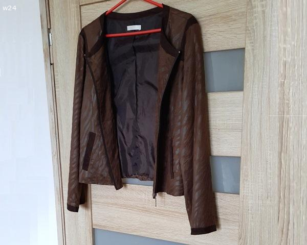 Żakiet damski brązowy, cienki zamsz z fakturą - M